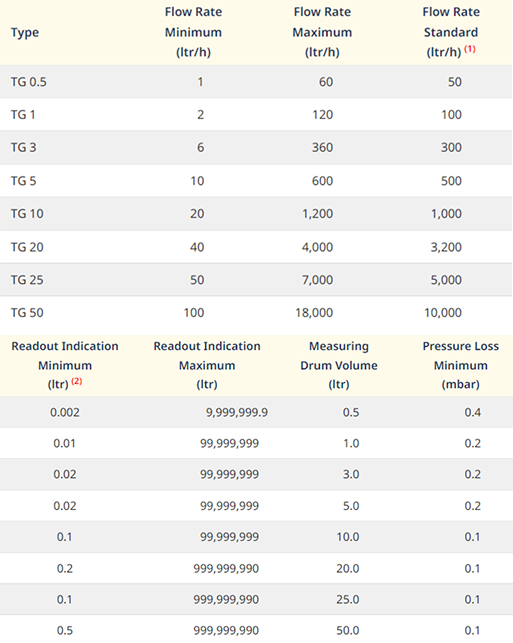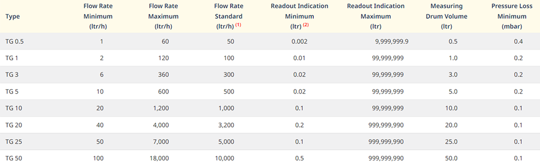 원하는 측정 범위는 -10 °C ~ +80 °C 범위의 가스 온도에서 전체적으로 1 Ltr/h ~ 18,000 Ltr/h의 8가지 크기(유형) 중에서 선택할 수 있습니다.